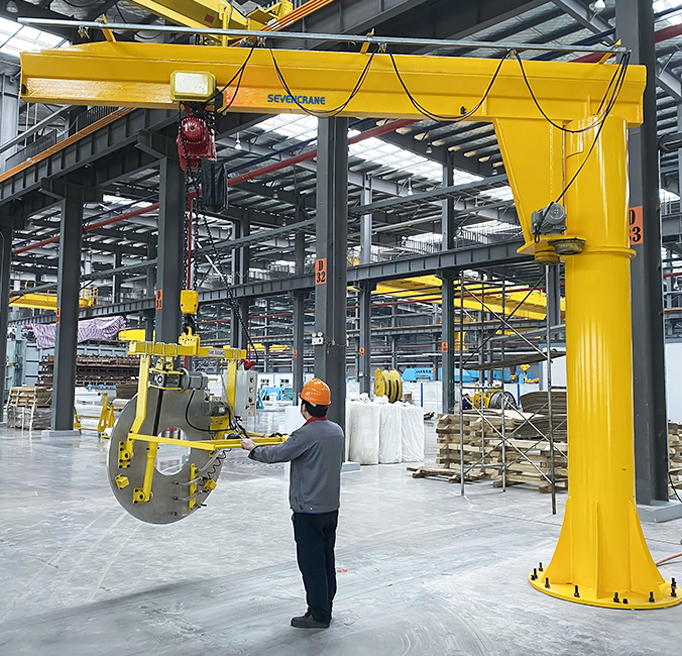 The most commonly requested mounting for pillar jib cranes now involves anchor rods set in a concrete foundation block. SEVENCRANE provides the anchors, a steel template for positioning the anchor box, and guidelines for pouring a reinforced foundation per GB50001-2011.